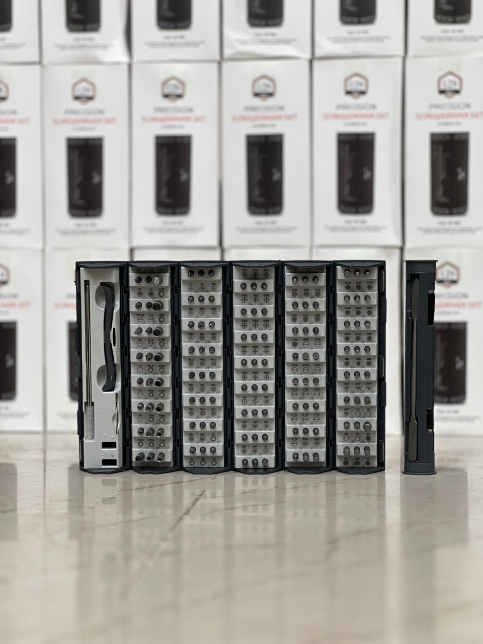 | توضیحات تعداد | این محصول که دارای 128 سری مختلف برای کاربردهای متنوع می باشد نیاز شما را بطور کامل می تواند برطرف کند حتی دارای یک نازل فنری برای مکان های بد دست می باشد که بتوانید پیچ های مناطق بد دست را به راحتی باز کنید. همچنین داخل این پک 2 اسپاتول فلزی و پلاستیکی و یک پنس سر صاف دقیق نیز وجود دارد که با توجه به این ابزارها این محصول بعنوان ابزار تعمیر موبایل و لوازم الکترونیکی یک محصول ایده آل می باشد نوع سریها: مربع، صلیب، تخت، بسته دو سو، چهارسو، سه پر- آلن- ستاره ای 5گوش- ستاره ای 6 گوش … G4.5/0.B/1.0/0.1//0.3/SCRAPE/T2/T3 G3.8/OVAL/PH2/IN PH2/IN Y2/PRY/T1/T2 M2.5/M3.0/M3.5/M/4.0/M4.5/M5.0/M5.5/ T5/T6H/T8H/T9H/T15H/Y000/Y00/Y1 T4/T6H/T7H/T9H/T10H/T25H/Y000/Y0 T4/T5/T7H/T8H/T10H/T20H/Y000/Y00 AP2/AP5/2.5/PH000/PH000/PH00/PH1/PZ0 AP2/AP5/2.0/PH0000/PH000/PH00/PH1/PH2 Y2/AP2/AP6/PH0000/PH00/PH0/PH2 SL1.0/SL1.3/SL2.5/SL4.0/H0.7/H1.5/H2.0/H3.5 PZ2/SL1.3/SL2.0/SL3.5/SL5.0/H1.3/H2.0/H3 PZ1/SL1.0/SL1.5/SL3.0/SL4.5/H0.9/H1.5/H2.5 H5/U6/مثلثی2.0/مثلثی3.0/SQ2/H5-64/H1-8/H3-16 H4.5/U4/U10/مثلثی2.6/SQ1/H1-16/H7/64/H5-32 H4/H6/UB/مثلثی2.3/SQ0/SQ3/H3-32/H9-64 دارای سری های کامل و بسیار باکیفیت |