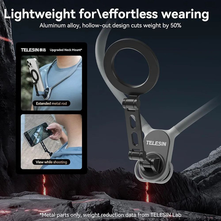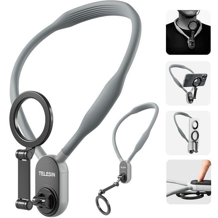 هولدر گردنی Telesin ابزاری کاربردی و راحت برای کسانی است که میخواهند هنگام فیلمبرداری، عکاسی یا استفاده طولانی مدت از موبایل و دوربینهای اکشن، دستهایشان آزاد بماند. طراحی ارگونومیک این هولدر باعث شده استفاده از آن ساده، مطمئن و راحت باشد.